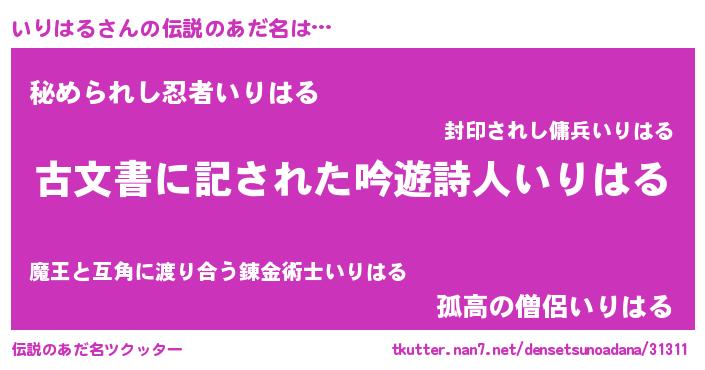 | 意味不明あだ名 | 『永久保存いりはる』『自称いりはる』 |