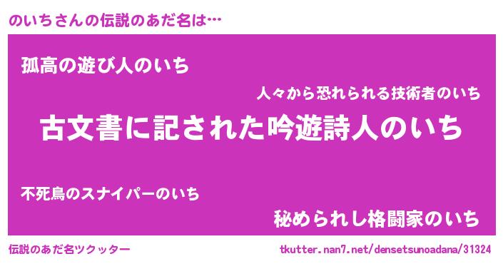| 意味不明あだ名 | 『永久保存のいち』『しいたけ科のいち属』 |
