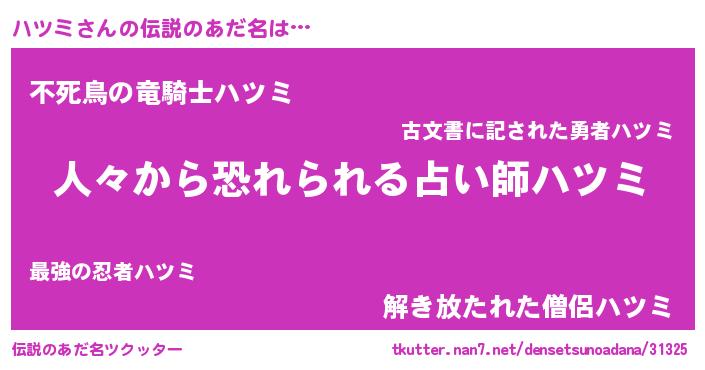 | 女子向けラノベタイトル風あだ名 | 『首の姫と首なしハツミ』『ハツミ恋絵巻』 |
