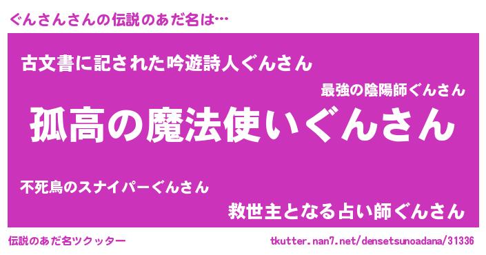 | 胡散臭い通販商品みたいなあだ名 | 『信頼と実績のサプリメント…その名も「ぐんさん」』 |