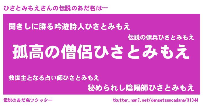 | 意味不明あだ名 | 『とにかく怪しいひさとみもえ』 |