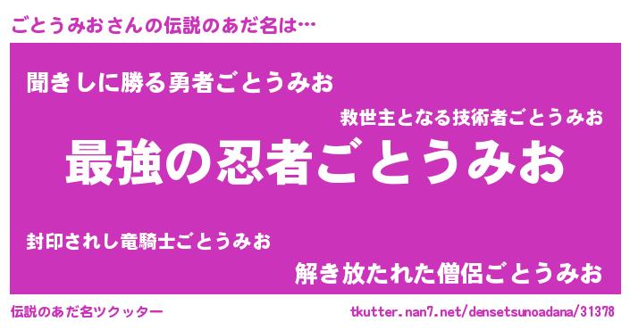 | ヒーロー風カッコイイあだ名 | 『最強戦士ゴトウミオ』『仮面ゴトダー』 |