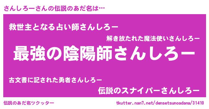 | 胡散臭い通販商品みたいなあだ名 | 『あなたにだけ特別に提供する世界で10本だけ現存している希少なブランデー…その名も「さんしろー」』 |