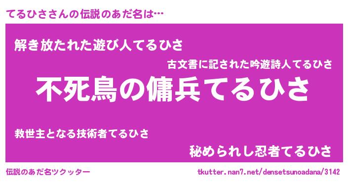 | 男性向けラノベタイトル風あだ名 | 『転生したらてるひさだった件』 |