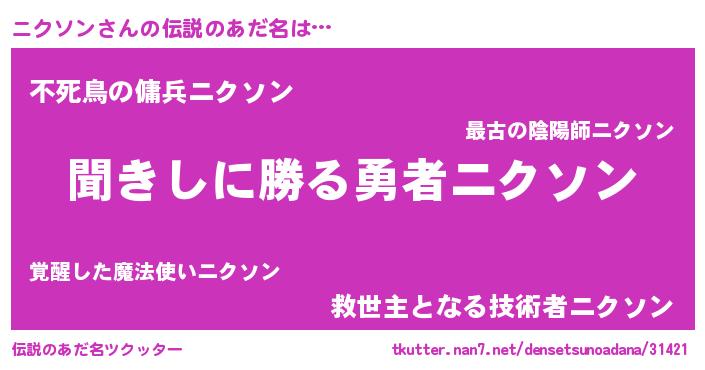 | 男性向けラノベタイトル風あだ名 | 『緋弾のニクソン』 |