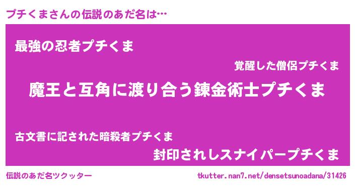 | ヒーロー風カッコイイあだ名 | 『仮面プチダー』『友情の使者プチくま』 |