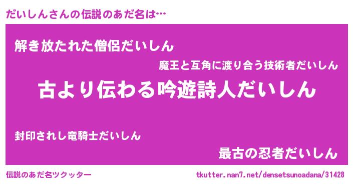 | 意味不明あだ名 | 『自称だいしん』『永久保存だいしん』 |