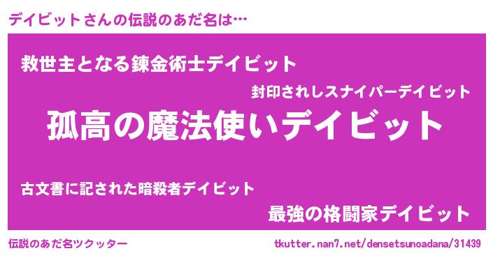 | 女子向けラノベタイトル風あだ名 | 『デイビットは平凡を望む』 |