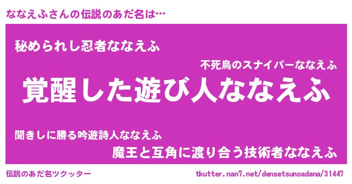 | 意味不明あだ名 | 『とにかく怪しいななえふ』 |