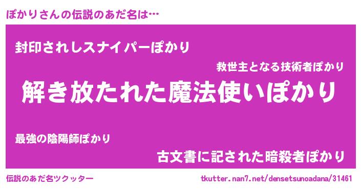 | 胡散臭い通販商品みたいなあだ名 | 『伝統あるサプリメント…その名も「ぽかり」』 |