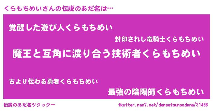 | ヒーロー風カッコイイあだ名 | 『愛の使者くらもちめい』『仮面クラダー』 |