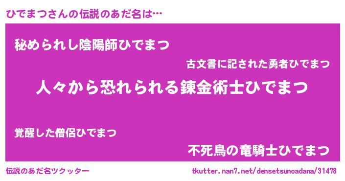 | 意味不明あだ名 | 『しいたけ科ひでまつ属』 |