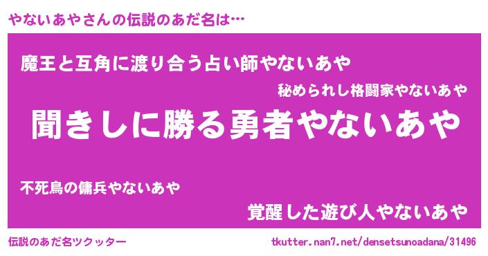 | ヘコむあだ名 | 『やないあや(苦笑)』『やなっ子』 |