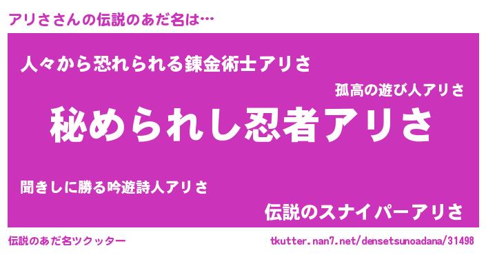 | ヒーロー風カッコイイあだ名 | 『ウルトラアリさマン』『スーパーアリサ』 |