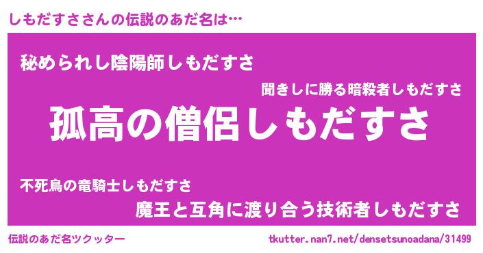| 意味不明あだ名 | 『住所不定無職しもだすさ(43歳)』 |