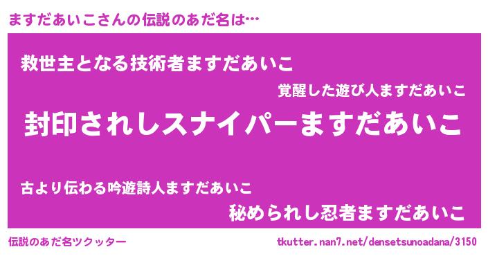 | ヒーロー風カッコイイあだ名 | 『スーパーマスダアイコ』『天弓騎士マス』 |