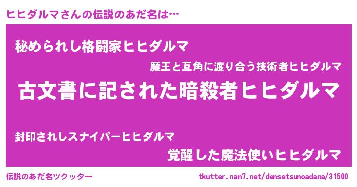 | ヒーロー風カッコイイあだ名 | 『究極戦士ヒヒダルマ』『仮面ヒヒダー』 |
