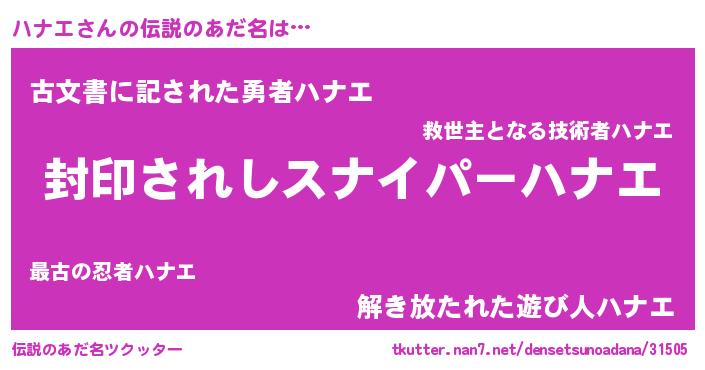 | ヒーロー風カッコイイあだ名 | 『スーパーハナエ』『ネオハナエ』 |
