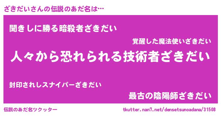 | 意味不明あだ名 | 『自称ざきだい』『永久保存ざきだい』 |