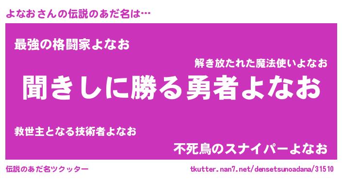 | ファンタジー風あだ名 | 『ヨナディッシュ』『エターナルヨナオー』 |