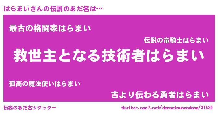 ヒーロー風カッコイイあだ名 | 『慈愛の使者はらまい』『ネオハラマイ』 |
