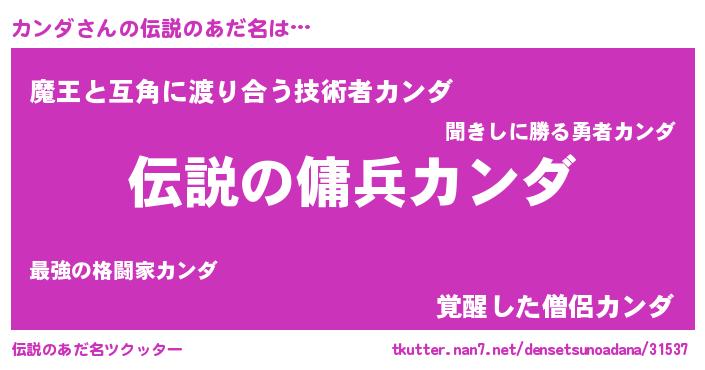 | 男性向けラノベタイトル風あだ名 | 『緋弾のカンダ』『カンダスレイヤー』 |