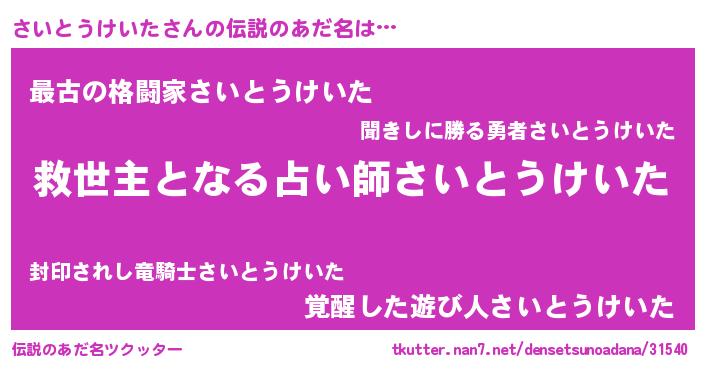| 意味不明あだ名 | 『自称さいとうけいた』 |