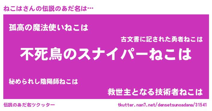| 胡散臭い通販商品みたいなあだ名 | 『モテモテ間違いなし霊験あらたかなお札…その名も「ねこは」』 |