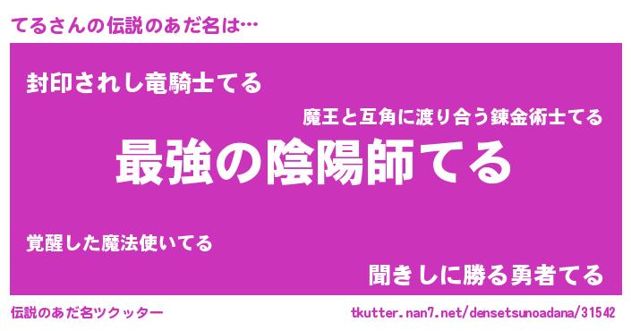 | 男性向けラノベタイトル風あだ名 | 『うちのてるが世界を掌握している!』 |