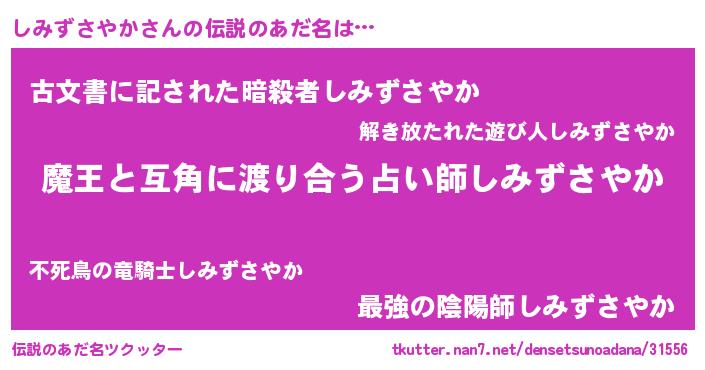 | 男性向けラノベタイトル風あだ名 | 『Re:しみずさやかから始める異世界生活』 |