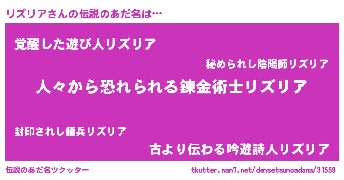 | ヒーロー風カッコイイあだ名 | 『正義の使者リズリア』『幻影騎士リズ』 |