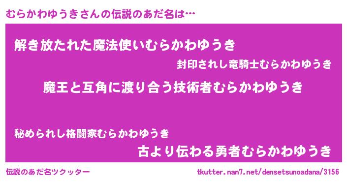 | ヘコむあだ名 | 『むらを』『むらかわゆうき(笑)』 |
