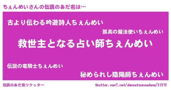 | 意味不明あだ名 | 『自称ちぇんめい』『永久保存ちぇんめい』 |