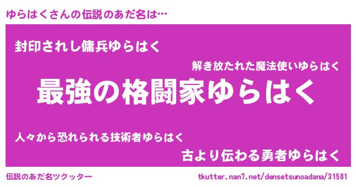 | 意味不明あだ名 | 『ゆらはくフォーエバー』『自称ゆらはく』 |