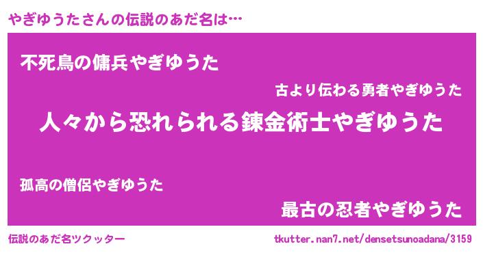 | ヒーロー風カッコイイあだ名 | 『正義の使者やぎゆうた』『仮面ヤギダー』 |