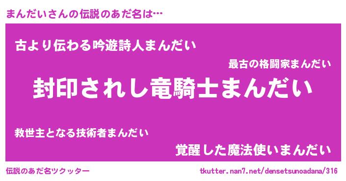 | 男性向けラノベタイトル風あだ名 | 『まんだいに滅ぼされるだけの簡単なお仕事です』 |
