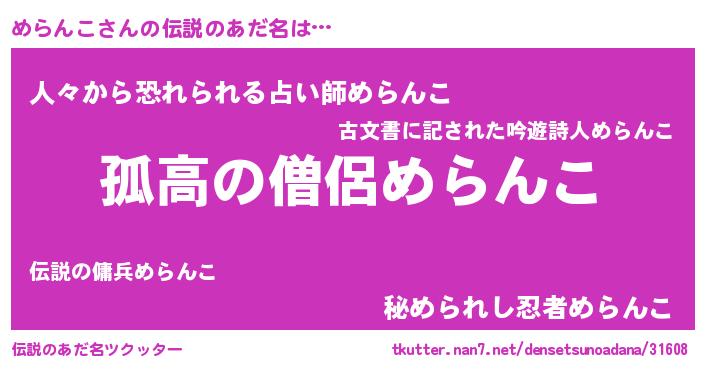 | 意味不明あだ名 | 『とにかく怪しいめらんこ』 |