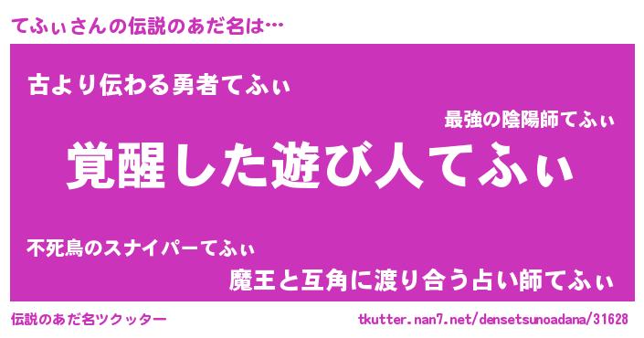 | 意味不明あだ名 | 『とにかく怪しいてふぃ』 |