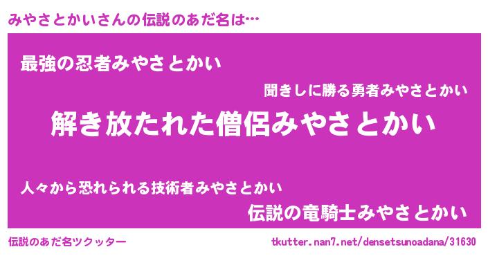 | ポケモン風あだ名 | 『ヒミヤサトカイ』『ミヤキング』 |