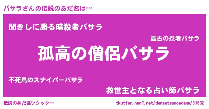 | 意味不明あだ名 | 『とにかく怪しいバサラ』 |
