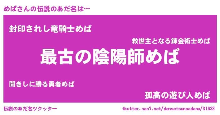 | ヒーロー風カッコイイあだ名 | 『ウルトラめばマン』『サイバー戦士メバ』 |
