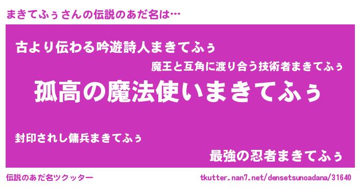 | 意味不明あだ名 | 『とにかく怪しいまきてふぅ』 |