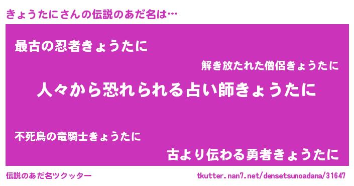 | ヒーロー風カッコイイあだ名 | 『正義の使者きょうたに』『仮面キョダー』 |
