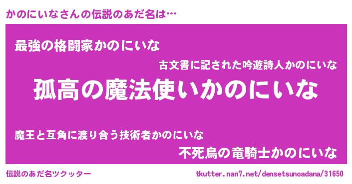 | 胡散臭い通販商品みたいなあだ名 | 『信頼と実績のサプリメント…その名も「かのにいな」』 |