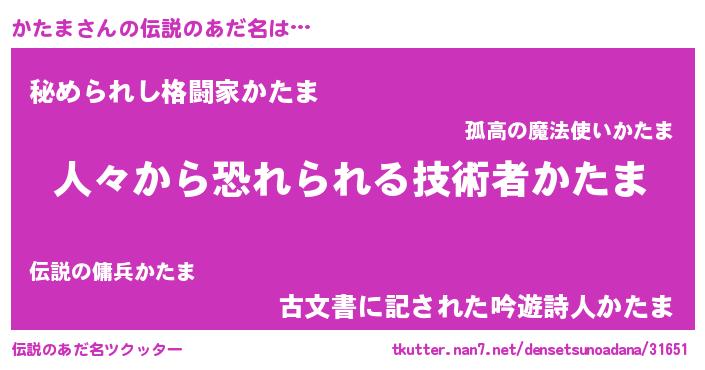 | ヒーロー風カッコイイあだ名 | 『正義の使者かたま』『ネオカタマ』 |