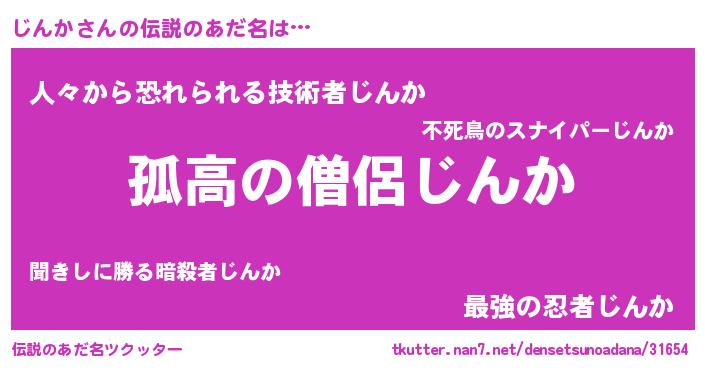 | ヒーロー風カッコイイあだ名 | 『黄金騎士ジン』『友情の使者じんか』 |