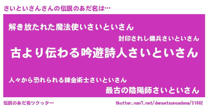 | 意味不明あだ名 | 『永久保存さいといさん』 |