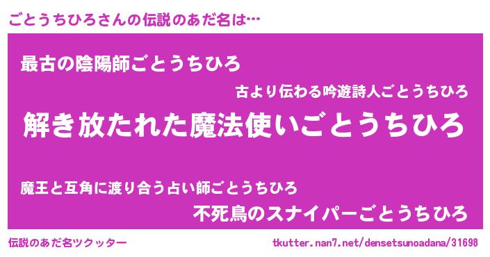 | ヒーロー風カッコイイあだ名 | 『サイバー戦士ゴトウチヒロ』 |