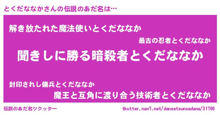 | ヘコむあだ名 | 『とくだななか(笑)』『とくを』 |