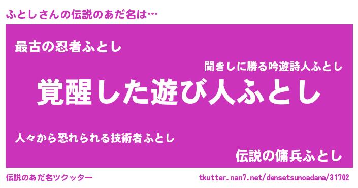 | ヒーロー風カッコイイあだ名 | 『究極戦士フトシ』『銀牙騎士フト』 |